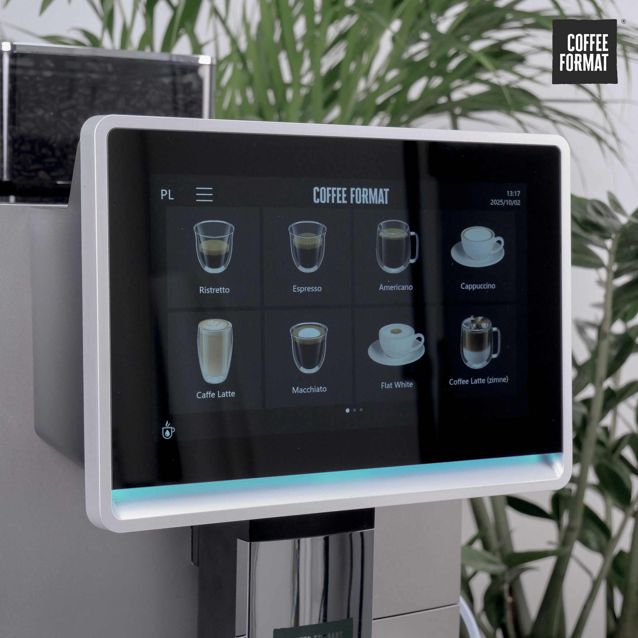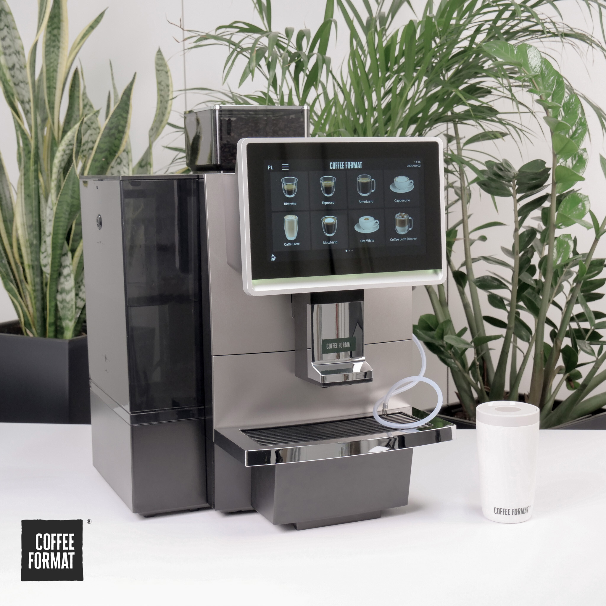 Coffee Format Break to ekspres, który redefiniuje pojęcie wydajności. Łączy w sobie nowoczesną estetykę z funkcjami znanymi z największych maszyn gastronomicznych. Dzięki ogromnemu zbiornikowi na ziarna, dwóm termoblokom oraz możliwości pełnego podłączenia mediów, model ten zapewnia ciągłość pracy nawet w najbardziej obciążonych punktach biurowych i gastronomicznych.